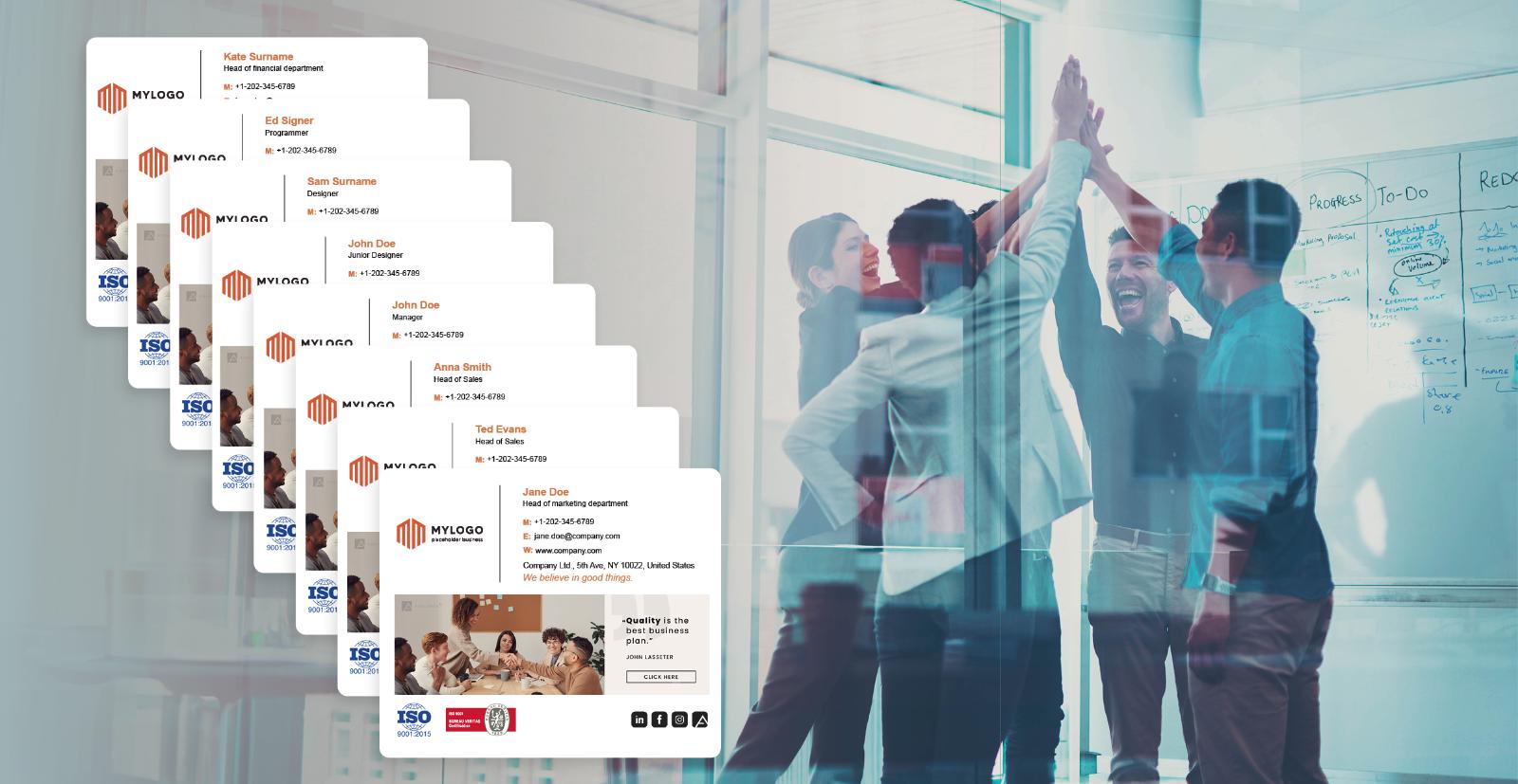 For example, the sales department may emphasize product promotions or customer testimonials in their signatures, while the customer support department may highlight contact information and service offerings. Whereas, the marketing department may promote upcoming events or content resources, while the HR department may highlight job openings or employee benefits.